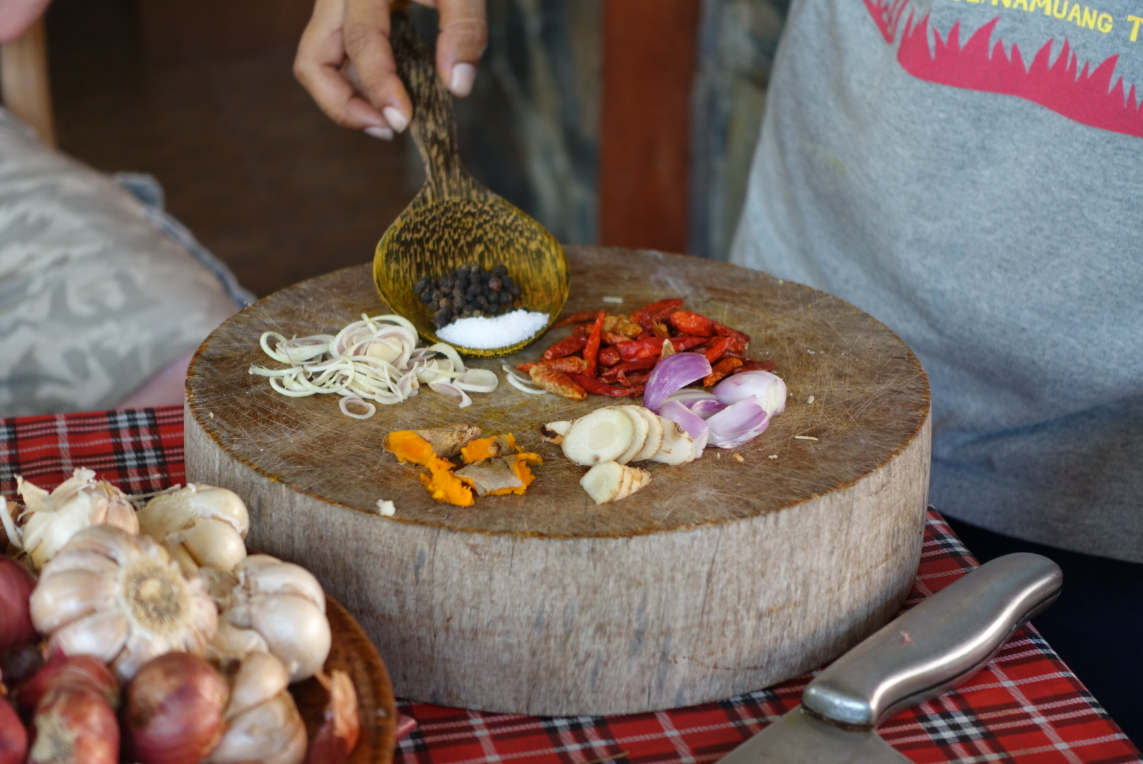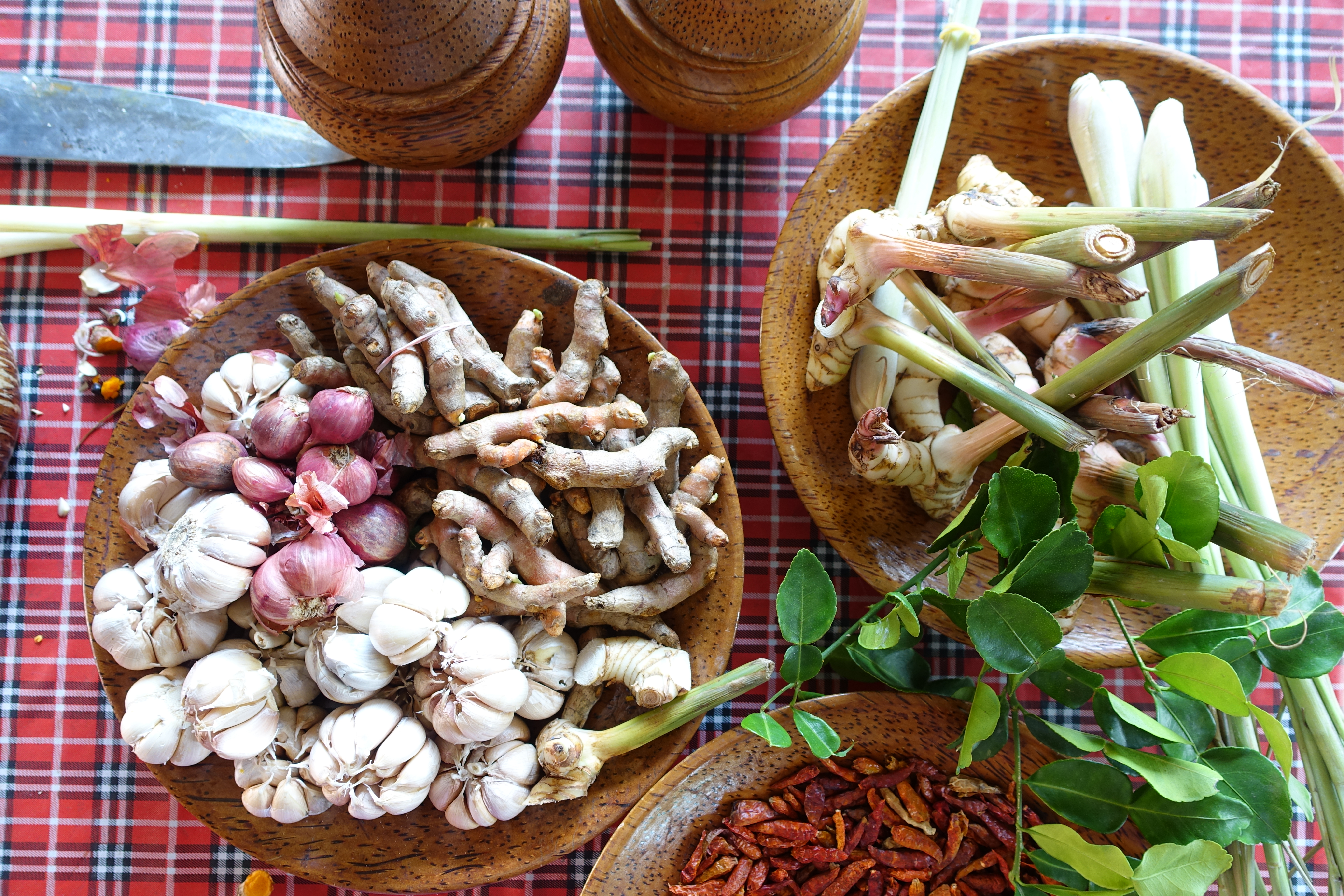 Some of you have asked me if I quit posting after just starting…No worries I am still here, ready to cook and post. The reason for not posting: I have been on a fabulous family holiday to various destinations in Asia. We started in Singapore, followed by Vietnam and then to Thailand, Bangkok and Koh Samui. I have seen so many great things and took thousands of photos, but this is not a travel blog, it is all about food. And yes, we had the most delicious food in all of the places. While being in Koh Samui we did a tour around the island with a guide and at the very end she showed us how to make authentic red Thai curry paste. There are plenty of different recipes for curry paste, each family has their own. I took some photos while she was making the paste and this is the recipe I will share with you.